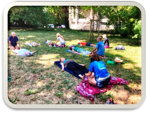 Echanges de massages, guidés à partir de différentes méthodes, essentiellement sur le haut du buste: épaules, dos, poitrine et cage thoracique.